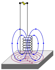 هنگامی که یک ماده رسانای الکتریکی در میدان مغناطیسی داینامیک سیم پیچ قرار میگیرد، القای الکترومغناطیسی رخ می دهد و جریان های گردابی در ماده القا می شود.